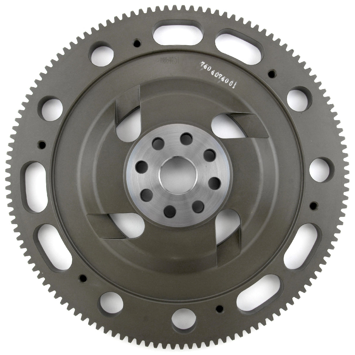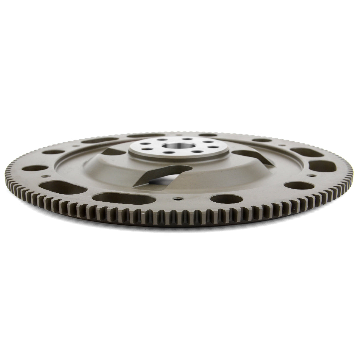 Most incorporate special design features to enhance the airflow which improves the cooling of the clutch. The ring gear teeth are integrated onto the flywheel unlike an aluminum flywheel where the ring gear is pressed onto the flywheel and has the possibility of separating from the flywheel due to the different expansion coefficients of aluminum versus steel. EXEDY steel billet and forged steel flywheels have passed engineering tests to 15,000-18,000 rpm. They are guaranteed not to fail to the said rpm, and are all SFI approved.