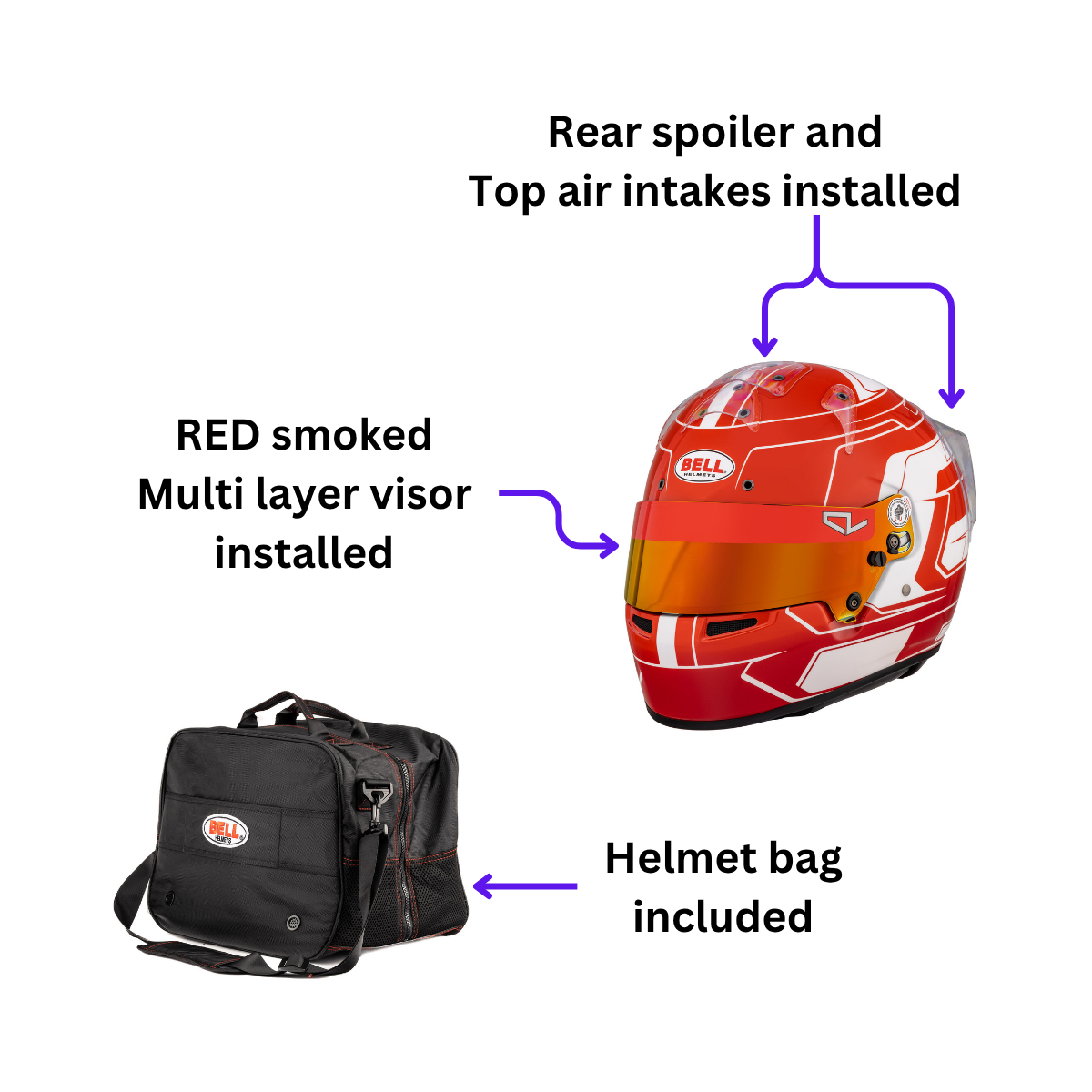 This special edition include in the price a multi-layer smoked visor, clear top and side air intakes, clear rear spoiler and HP helmet bag.