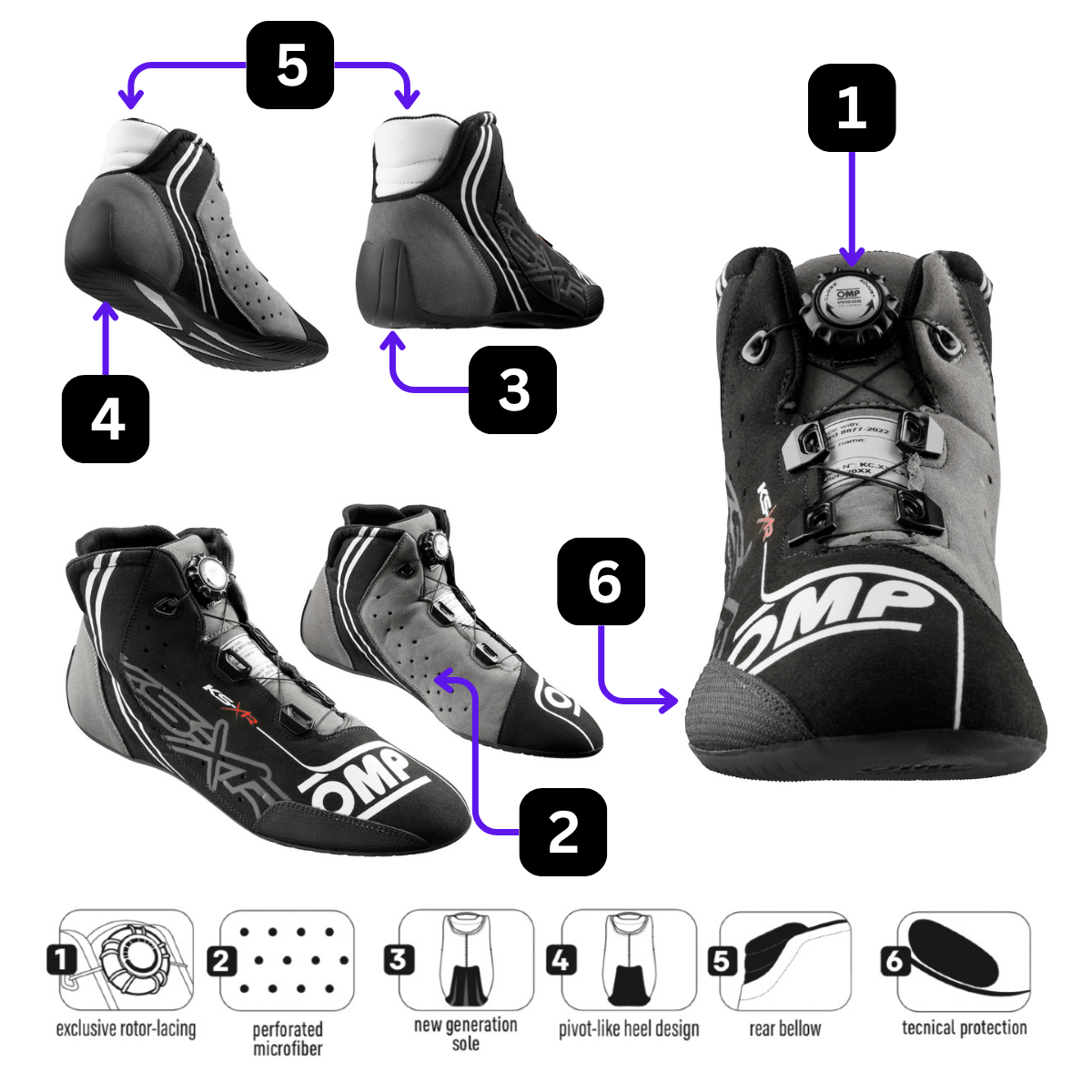 FIA 8877-2022 homologated premium level "Quick Lacing" shoes from OMP RACING.