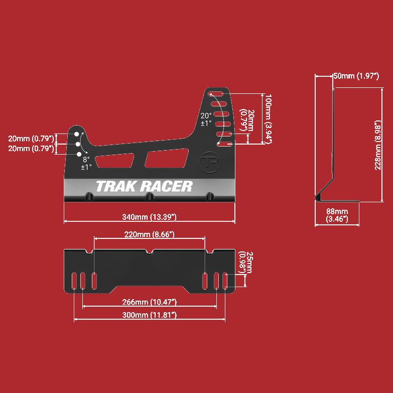 Trak Racer Oversized Seat Brackets are a great fit for all cockpits and mount to a large range of different (side-mounted) seats. A perfect addition for any sim rig! Features 18 adjustments to get you in that sweet spot! Fits most mountable seats.